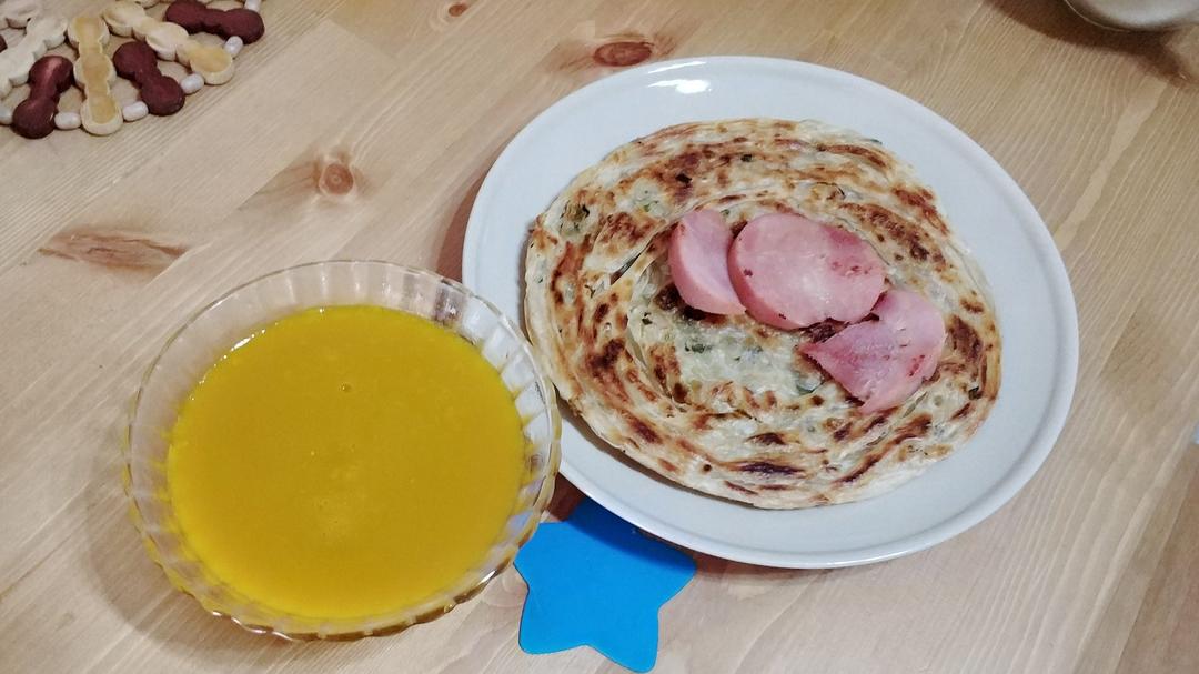 手抓饼火腿和南瓜粥(๑>ڡ<)☆