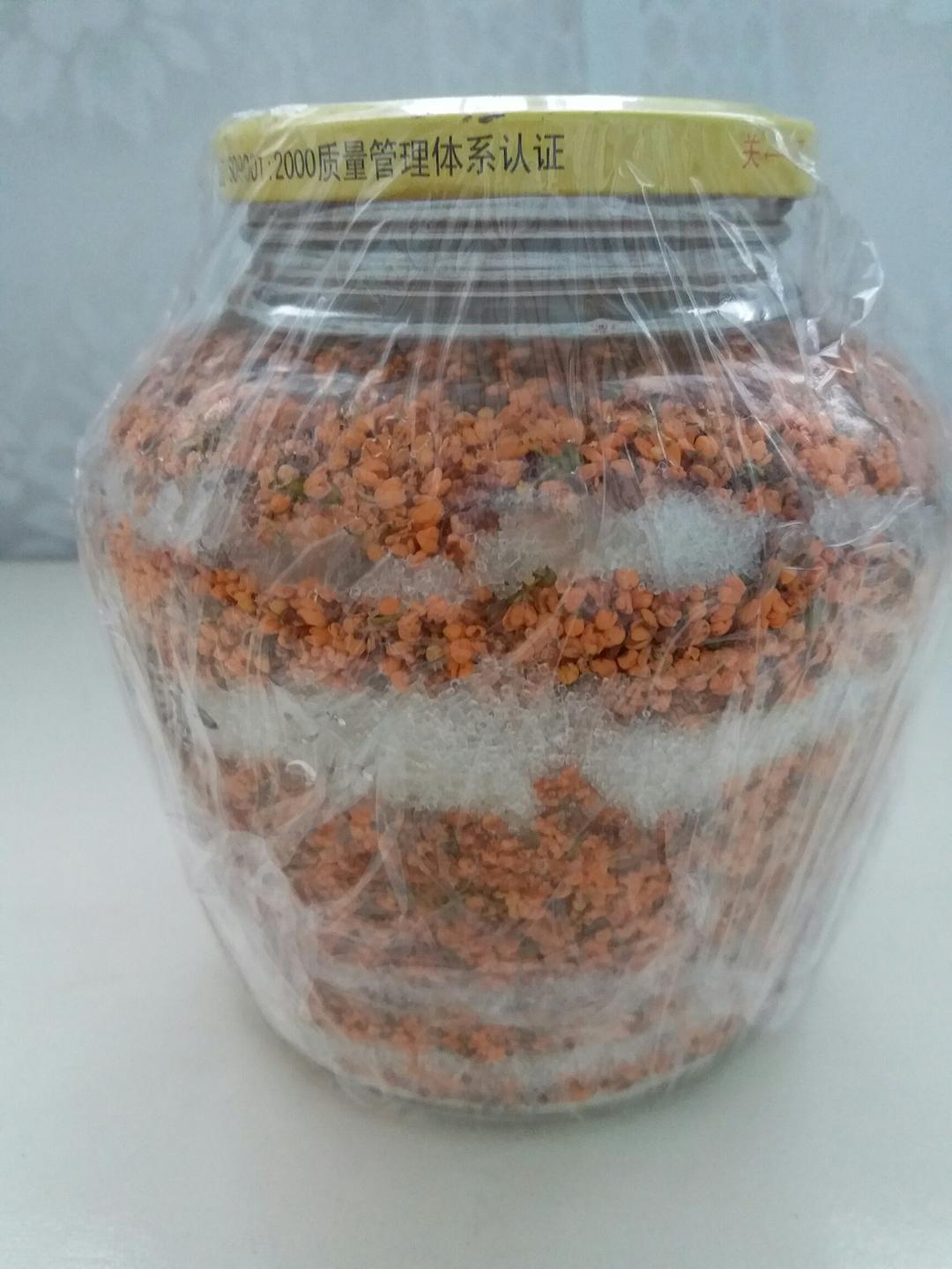之前腌制了一瓶 洗过后没有花香了 这次又采摘了一些 不再洗了 直接腌制 静等成功