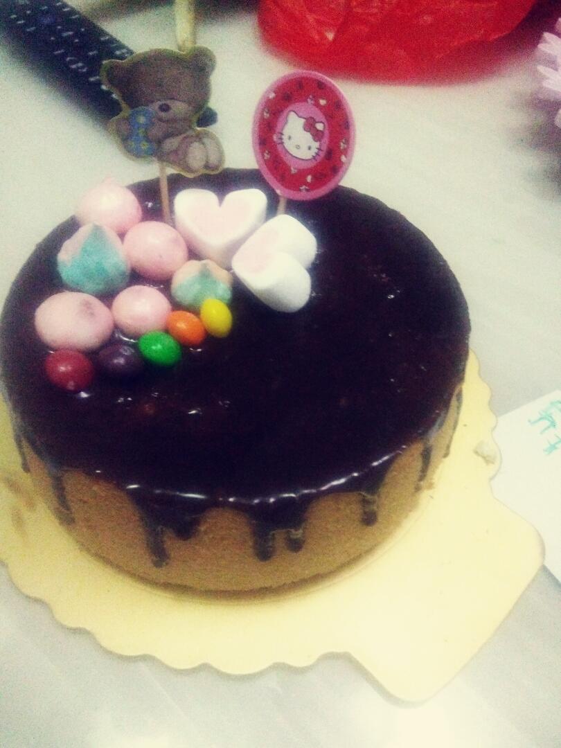 三蛋加高六寸,家里小朋友等着吃就不裱花了,做了淋面,还没装饰好呢,就开吃了。哎下次再交作业吧!