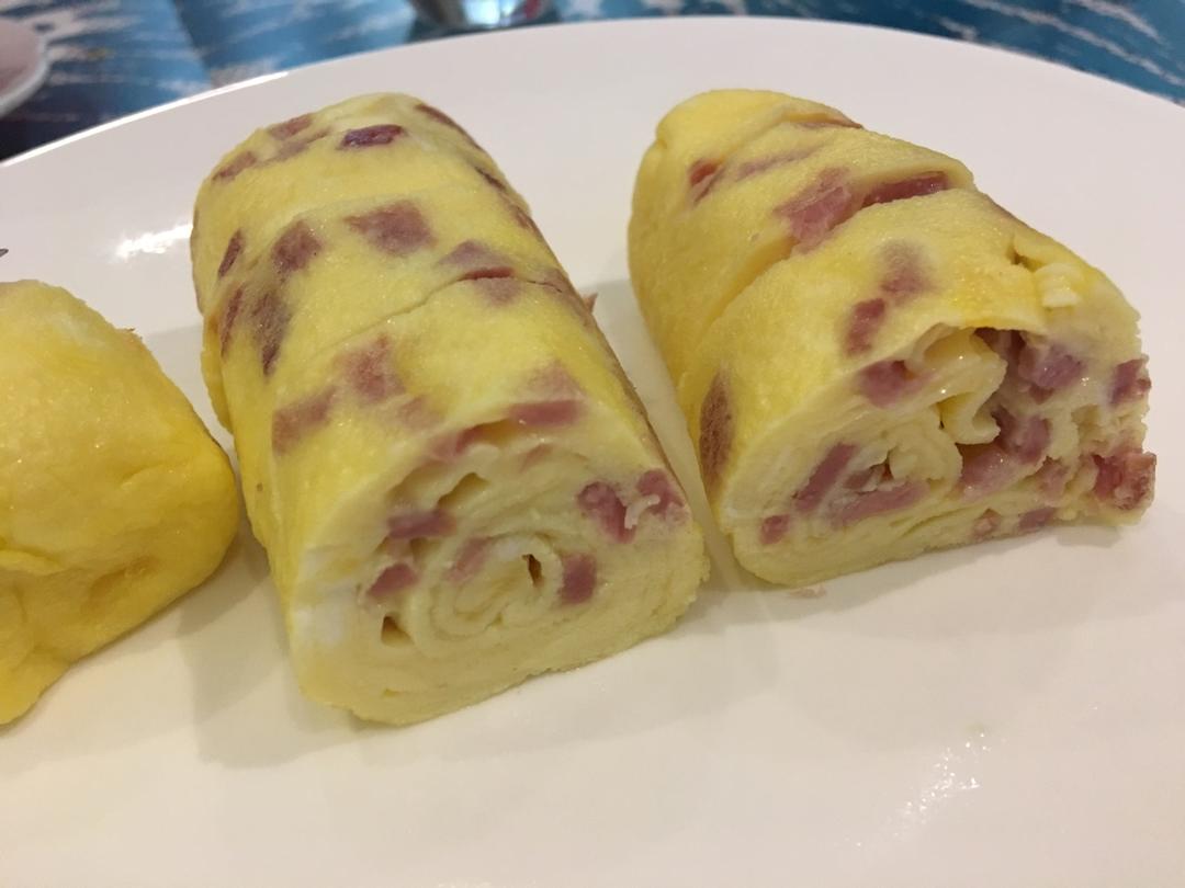 三个鸡蛋 一片培根 1.5大勺牛奶 普通平底锅做的 卷得不好 也不方……味道还不错