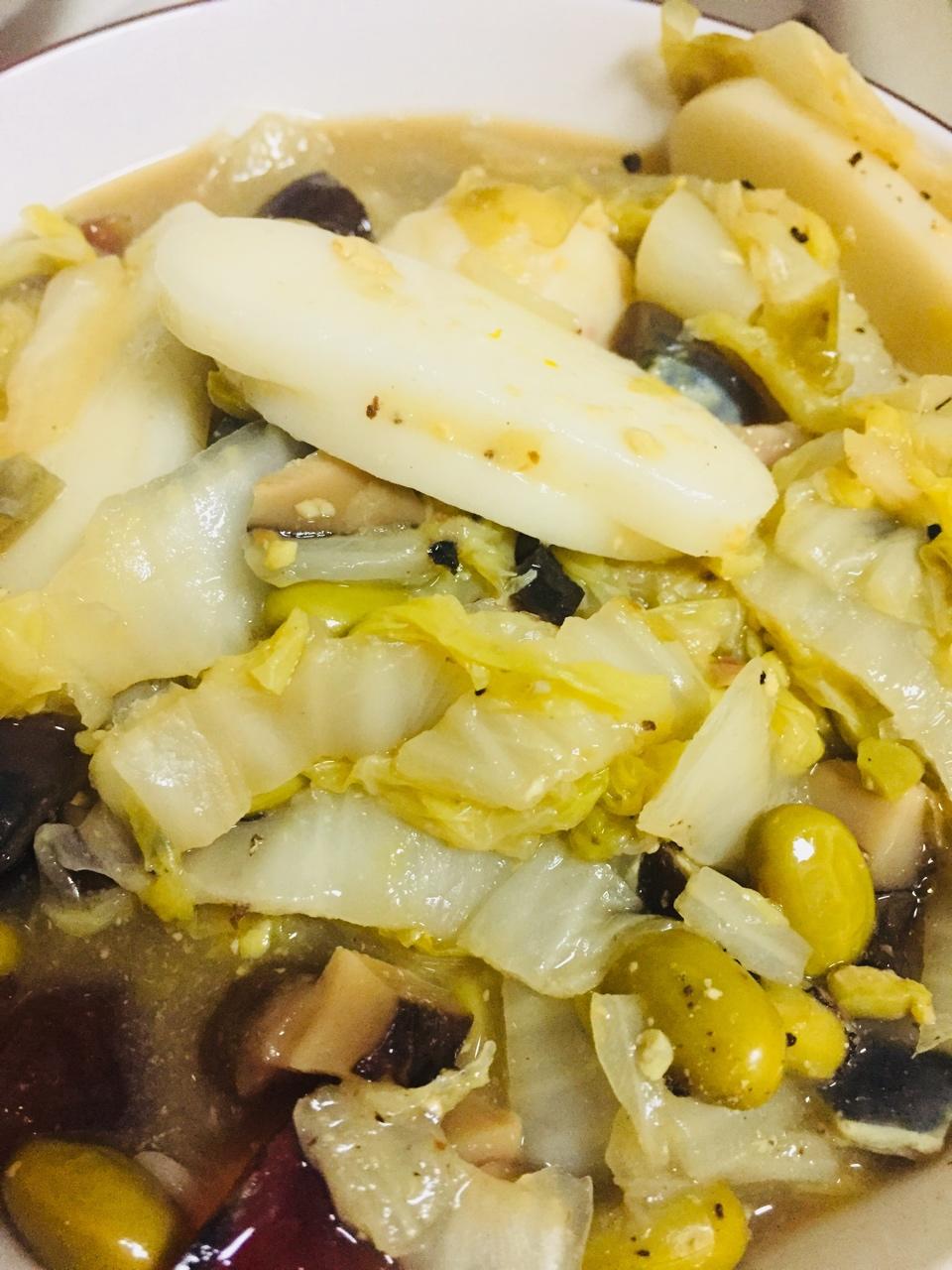 黄芽菜肉丝炒年糕