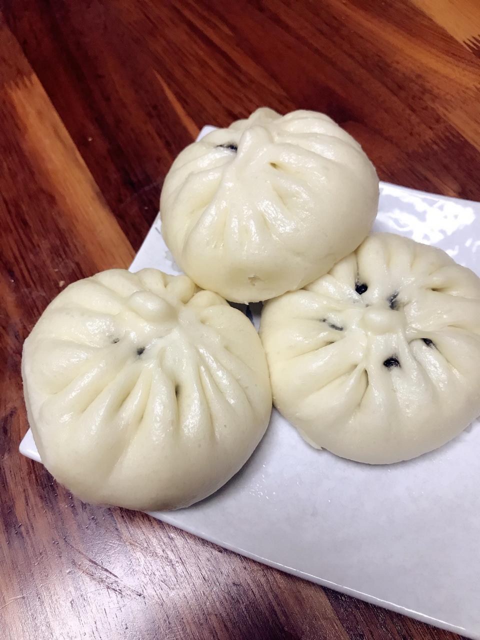 原来一次发酵这么方便,自制了白糖芝麻馅,但我包的手法有问题,做了露馅儿的包子😁