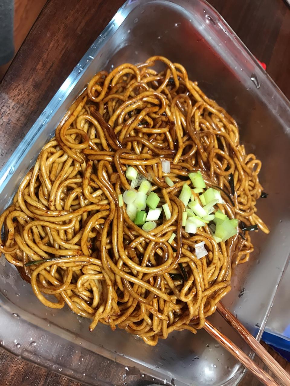 葱油拌面~做给老公吃,面条我没有煮,是做好了葱油后~加一点水~把面放进去焖熟的