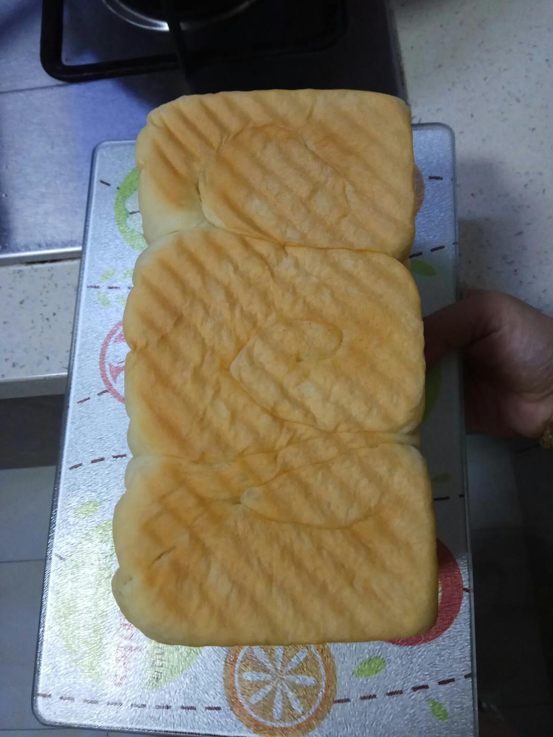 做了两个土司,蔓越莓+葡萄干+核桃,还有肉松的,一个面包土司能做三种口味,味道不错😊