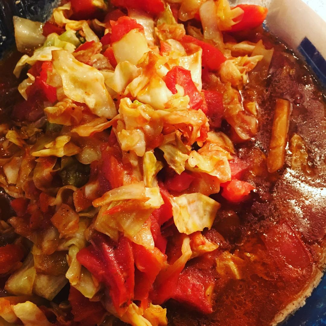 西红柿炒包菜丝