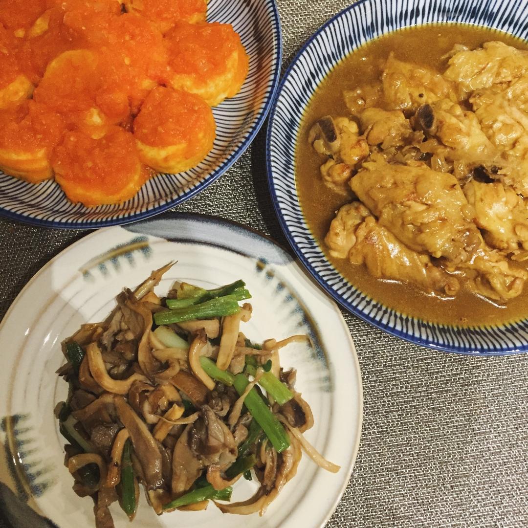 Hangover- 做过 黄金咖喱鸡翅 黄金咖喱鸡翅&番茄脆皮玉子豆腐&干煸椒盐平菇煮咖喱鸡翅一定要用不粘锅! (刚刷锅刷得欲哭无泪的我...)把新鲜番茄和洋葱一起打成了酱 加番茄酱和糖盐调味 裹煎好的日本豆腐 #晚餐•2017年10月19日# 2017-10-20