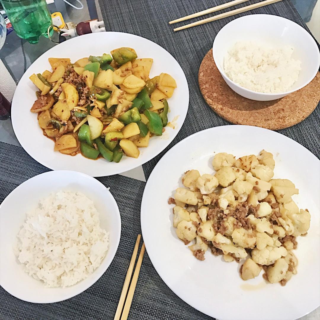没有五花肉用的是肉末,土豆好像切厚了哈哈哈哈哈,下次一定做得更好,嗯!