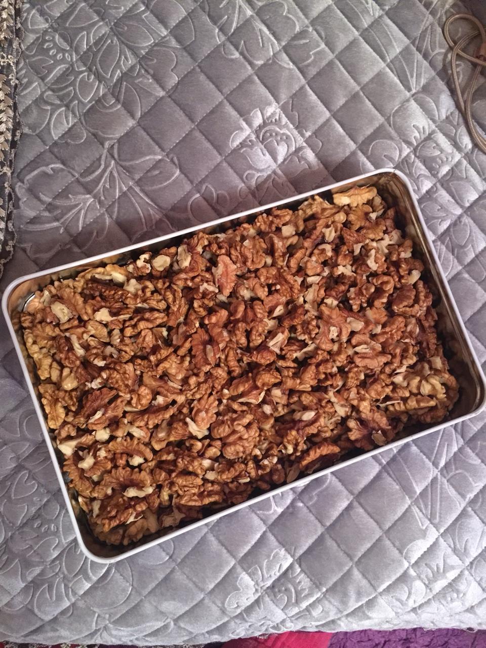 老公晚上给我剝了一大盒子的核桃,每天吃一点,将来你才会聪明哦!