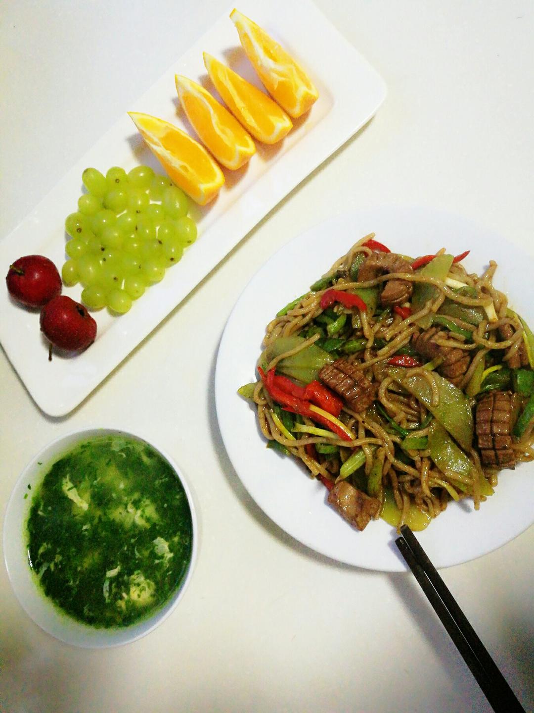 早安!😉腰花炒面、芹菜叶蛋汤!