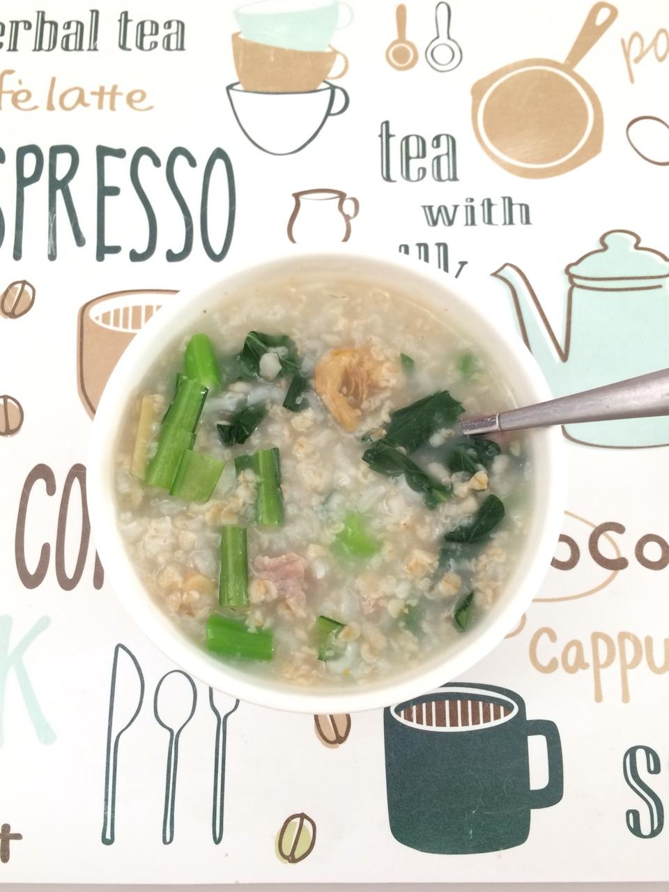 📝-肉片菜心粥,加燕麦片、🦐干,增加营养、提鲜!