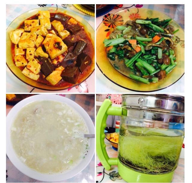 171109(210)早餐:鸳鸯豆腐+滑子蘑炒小白菜+鸡蓉粟米羹+玉米须冰糖水~