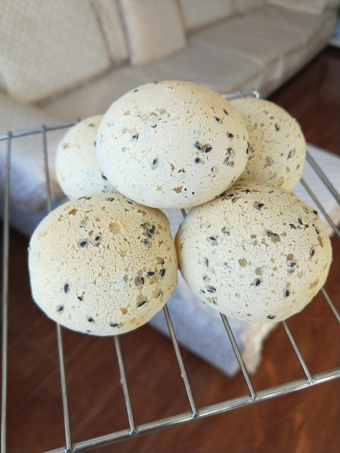 瑾苏流年 做过 爆浆麻薯、爆浆恐龙蛋、爆浆小团子 按照麻薯粉包装上的比例放的配料,做了十六个,一个25.5克,小金盘有点挤了,下次一盘少放几个,要不然会粘连,不圆不说,拿出来以后真的会撒气,憋了就不好看了,上175下150,35分钟,上色刚刚好,膨胀的很大,放在阳光下,会透光的 2017-11-11