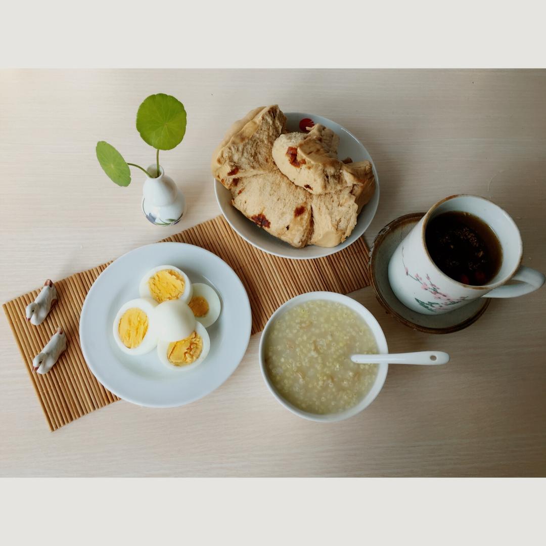 红糖馒头,小米粥,鸡蛋