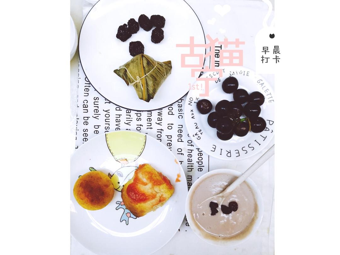 南瓜全麦面包➕山楂酱 五谷豆浆 葡萄 黑枣 粽子