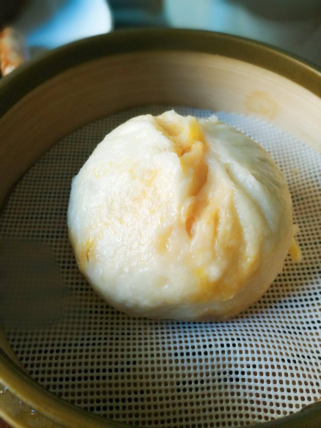 今日早餐:粥+榨菜+蟹黄包+灌汤包+涨烧饼+脆皮肠。脆皮肠自制 ,其余点心外购。