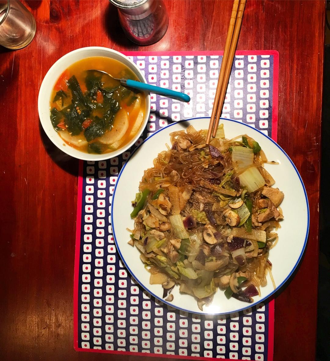 猪肉炖粉条+西红柿海带味增汤