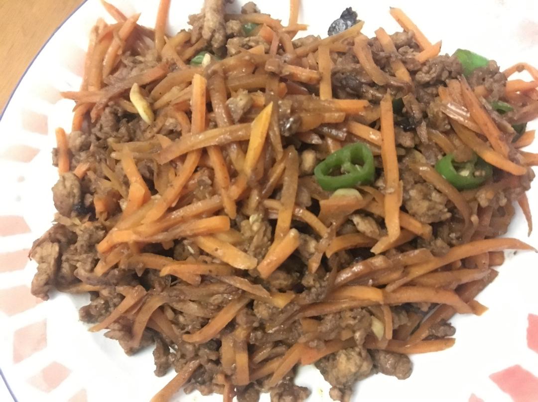 红萝卜青椒香菇炒肉末