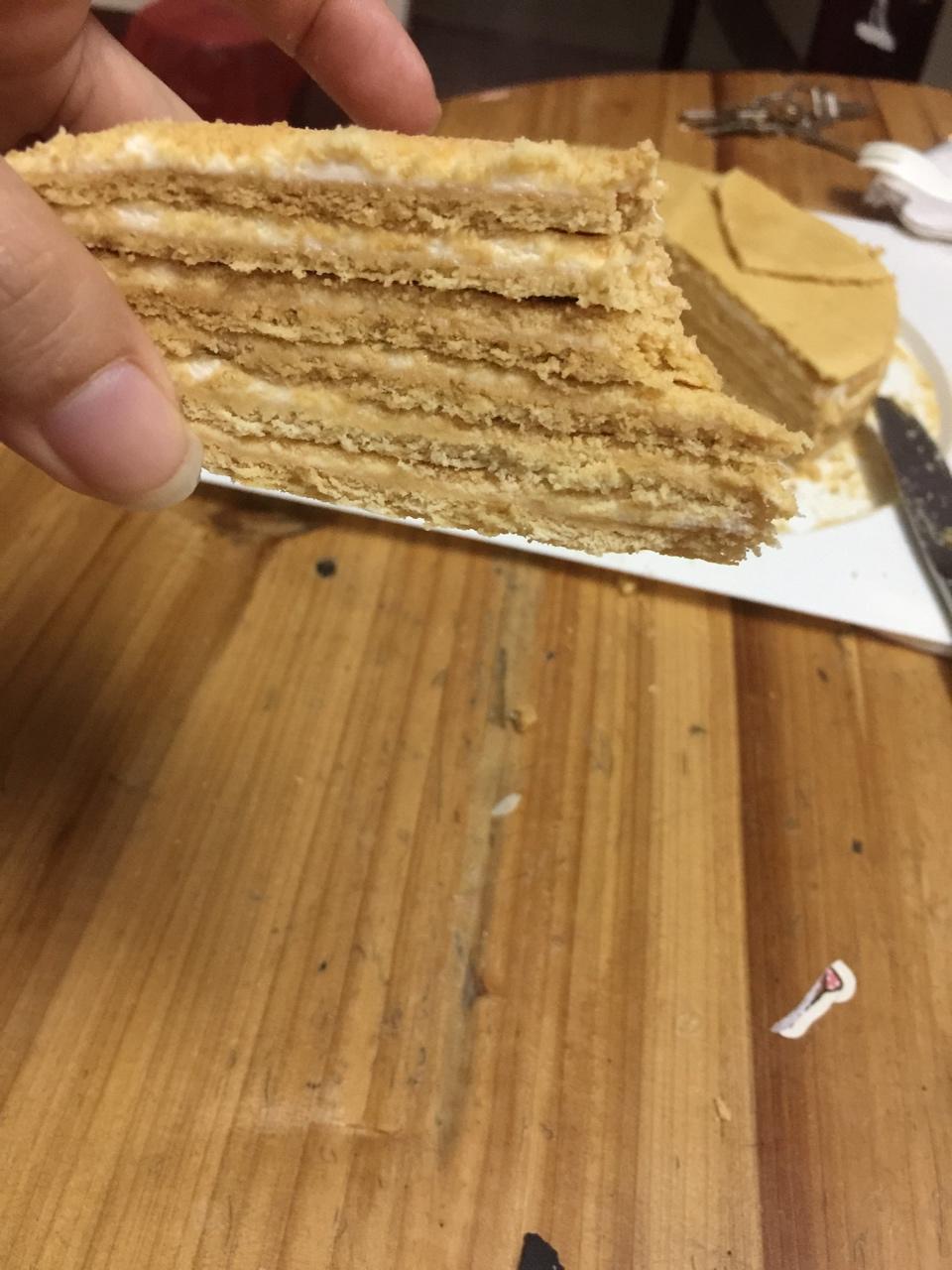阳光白云V 做过 俄罗斯蜂蜜蛋糕 千层蛋糕【又名提拉米苏】 第一次做,用了300ML淡奶油没有加黄油和练奶,蜂蜜味浓郁,淡奶油少了,还有两层没得用,只有六层,用的是慕斯8寸圆模,这方子不错 2017-12-03