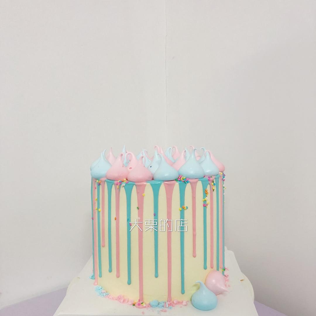 奶油霜黄油蛋糕+巧克力甘纳许淋面+蛋白糖