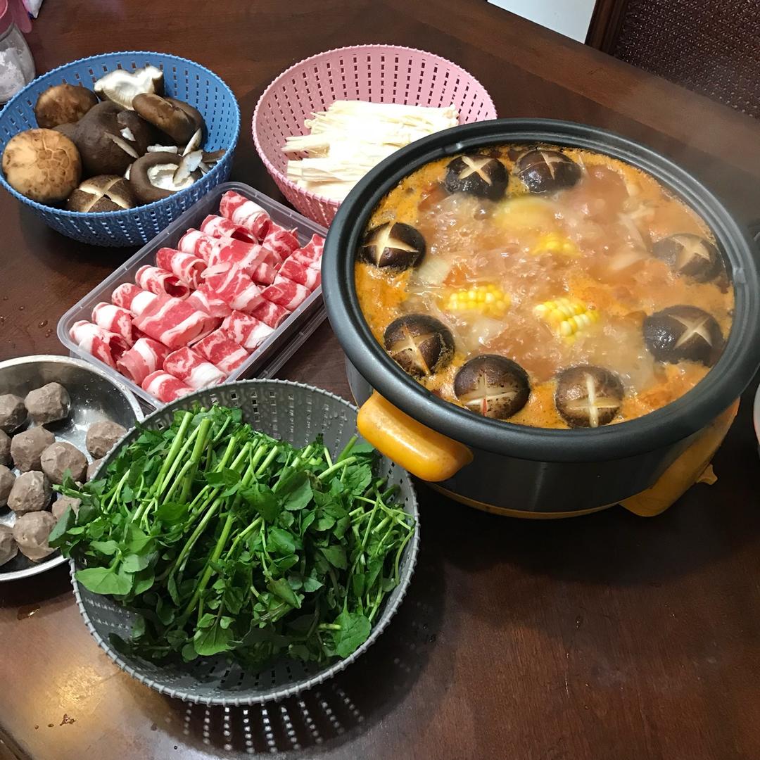 第一次在家做番茄锅嘿嘿开吃😋