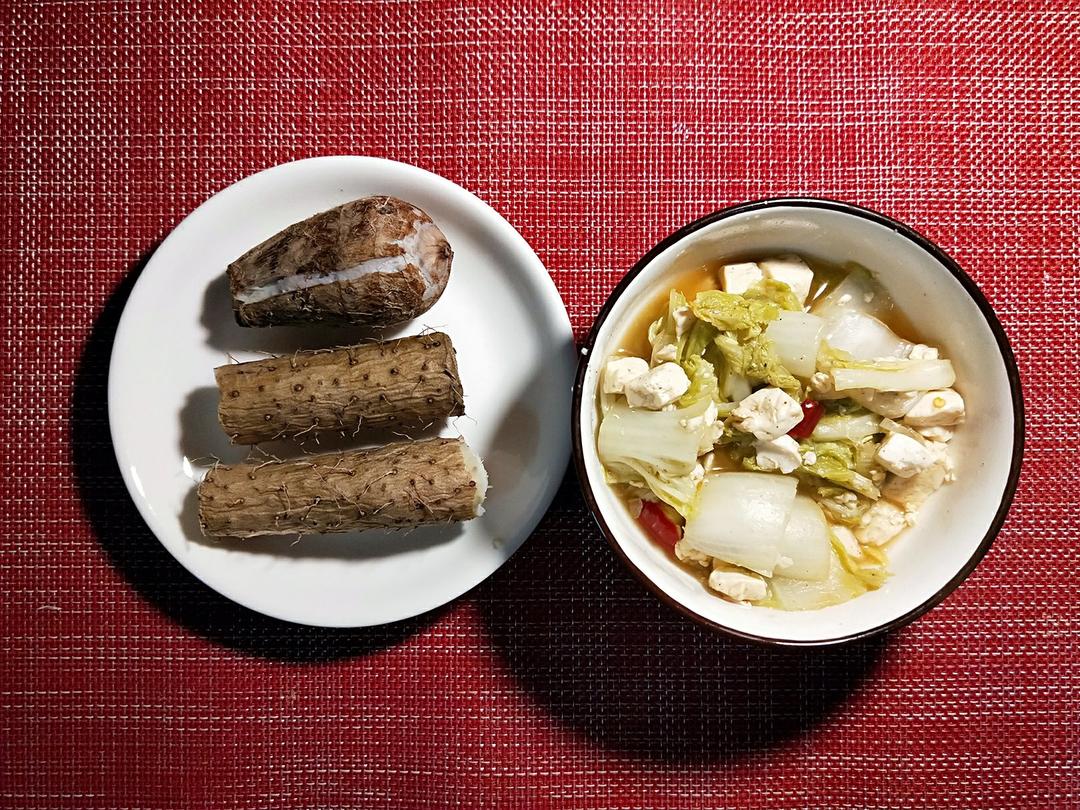 任真mm 做过 晚餐•2017年12月15日 #晚餐•2017年12月15日##我爱你,亲爱的姑娘。##慢慢变好#跨年21天打卡,第五天。白菜炖豆腐(我好喜欢这个),剩了半个山药 换了一片全麦面包吃,😂😂😂,我好像天天都吃面包。健身房训练去。 2017-12-15