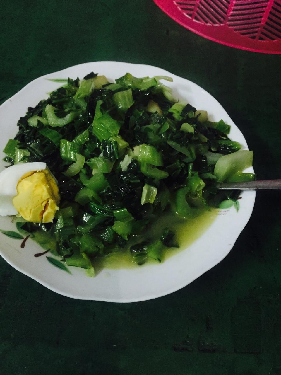 晚饭,一盘青菜加一个蛋