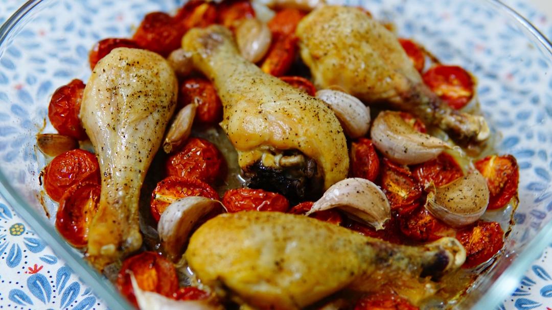 慢热喵 做过 番茄大蒜香草烤鸡腿(庄祖宜) 没有罗勒的烤鸡腿,还是缺了点味道啊~175°C烤60分钟就好了~大蒜不要剥皮,烤完软糯软糯更好吃~第一次吃牛奶草莓,感觉比平常吃的口感更清爽一些,就是性价比不高哈~ #晚餐•2018年1月2日# 2018-01-02