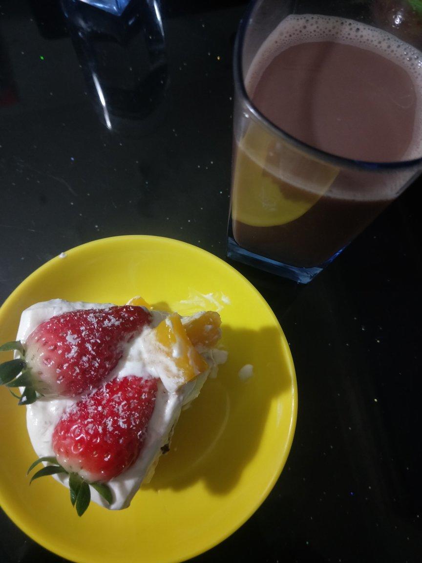 阿华田配草莓蛋糕