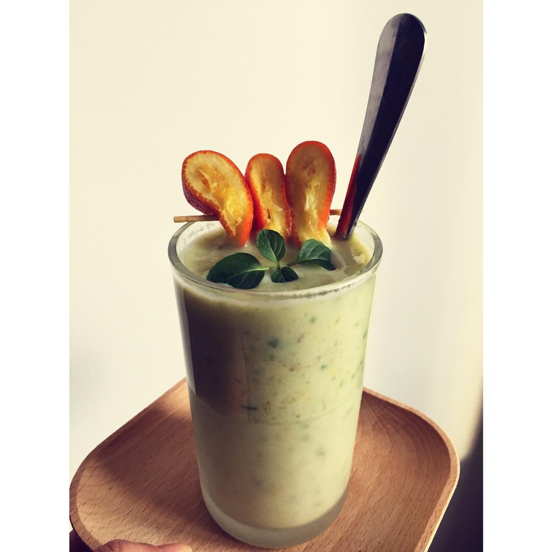 健康饮料牛油果香蕉甜橙奶昔 嘿嘿!