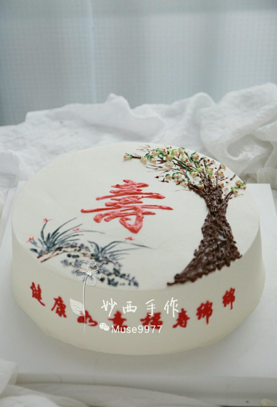 写实的寿桃和写意的兰花相搭配