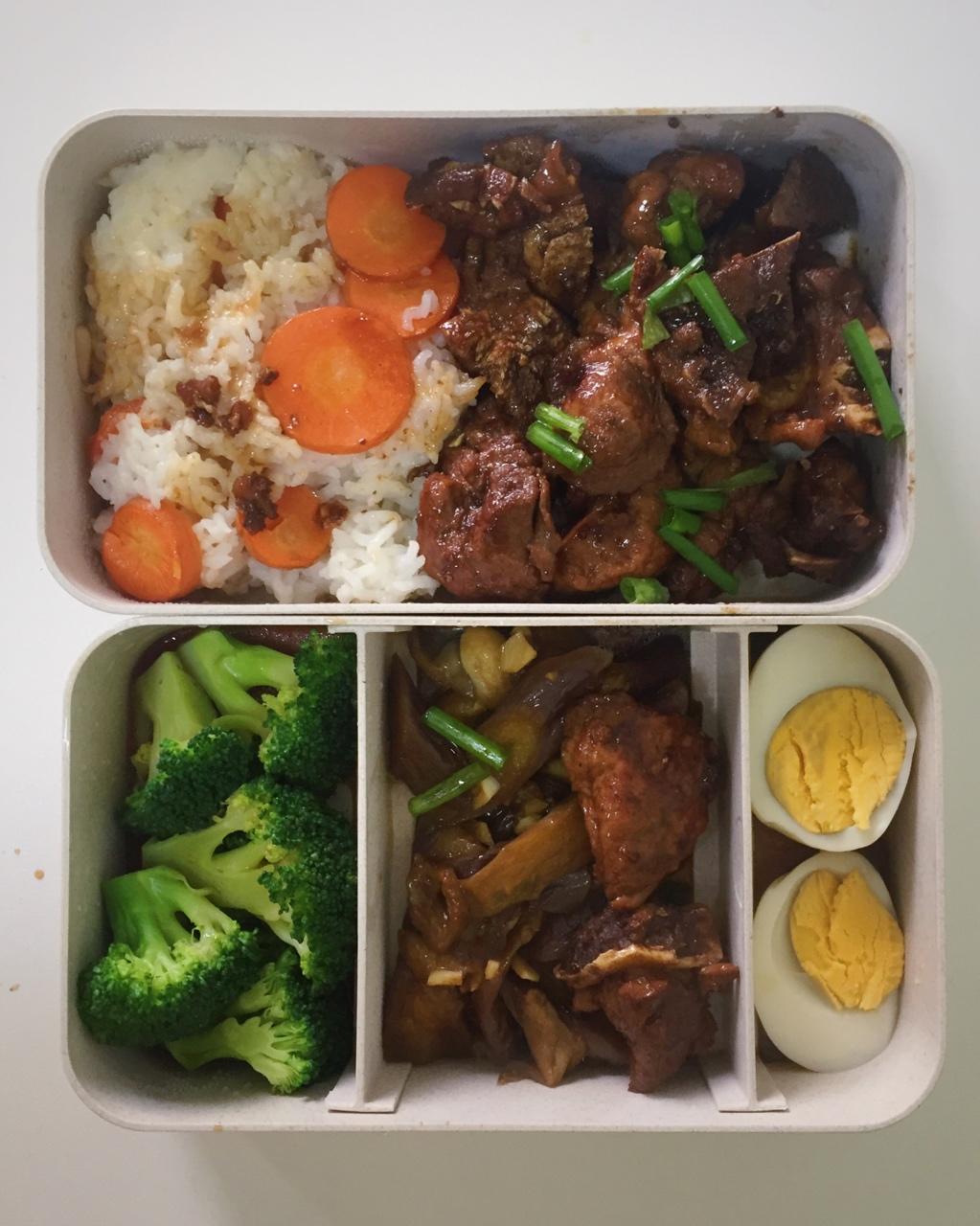 1.15午餐。糖醋排骨➕红烧茄子➕水煮西蓝花➕白煮蛋。