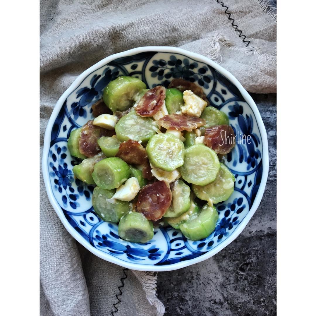 广式咸蛋腊肠炒丝瓜(超级下饭)