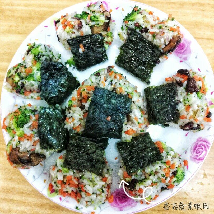 加了香菇和西兰花,美味😘~没有饭团模,用的烘焙的小模具,没有用手捏~