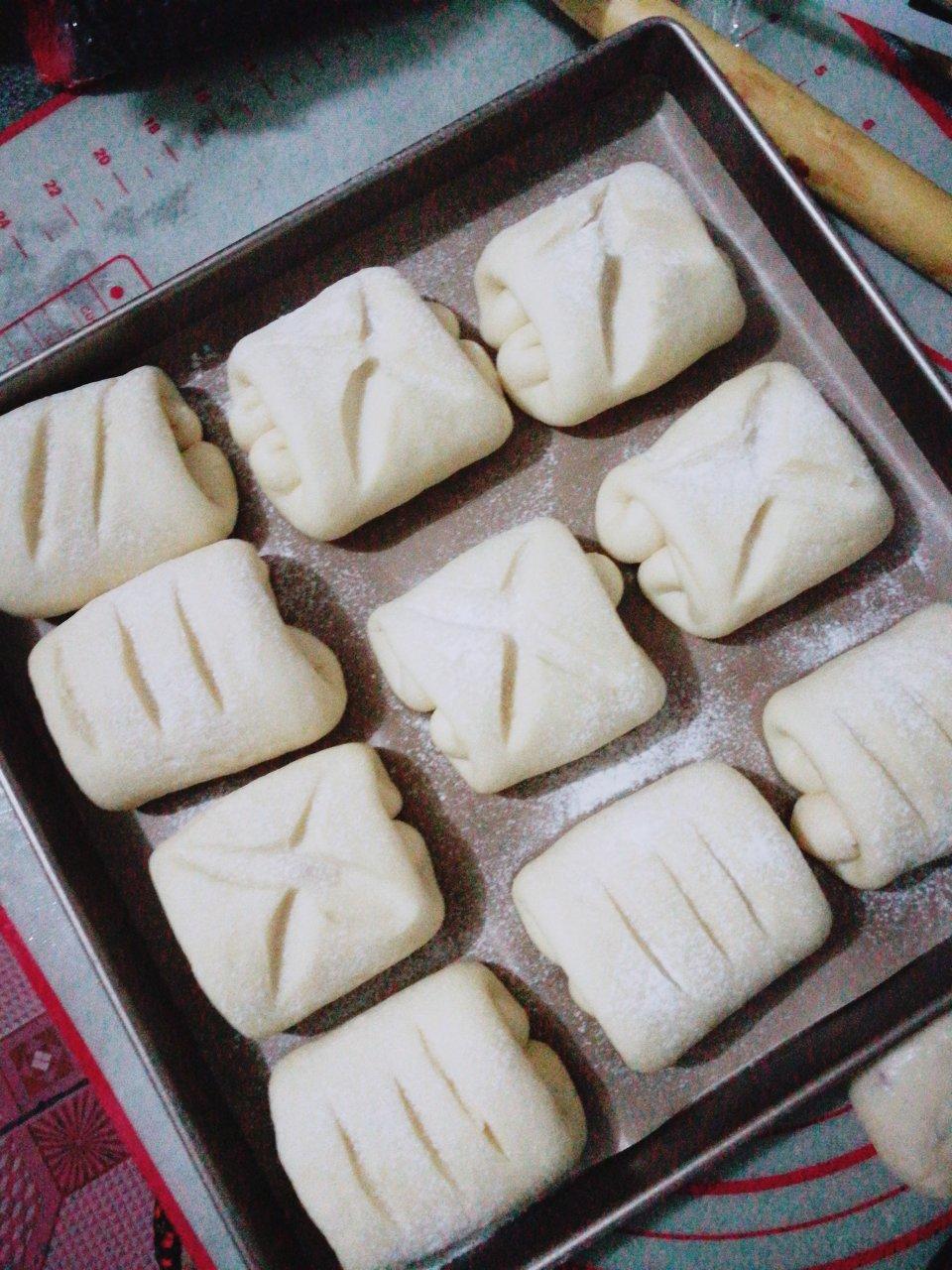 第二次做了,第一次发酵过头出现了酸味,两次相同的是不知道为什么没有面包的香味呢!做了两盘,第二盘加了蔓越莓干和蜜小豆。
