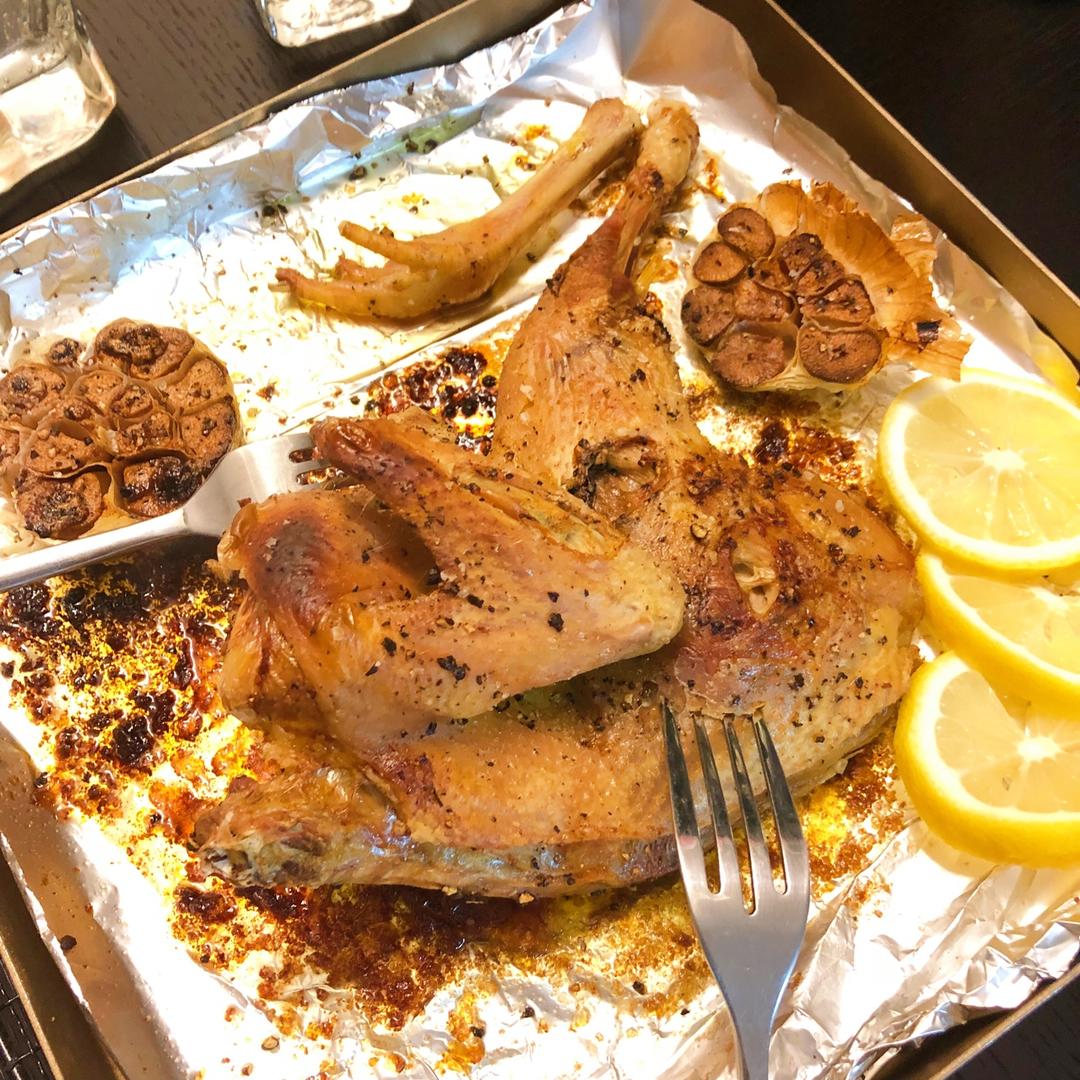 咖啡的涟漪 做过 田螺姑娘超级简单不用腌制脆皮烤鸡 婆婆家顺来了半只新鲜走地鸡,细节用现磨黑胡椒海盐拿来烤着试试看。果然皮脆的不要不要的,咸味也正好,放了一头蒜一起烤,满屋子香气弥漫。 2018-02-18