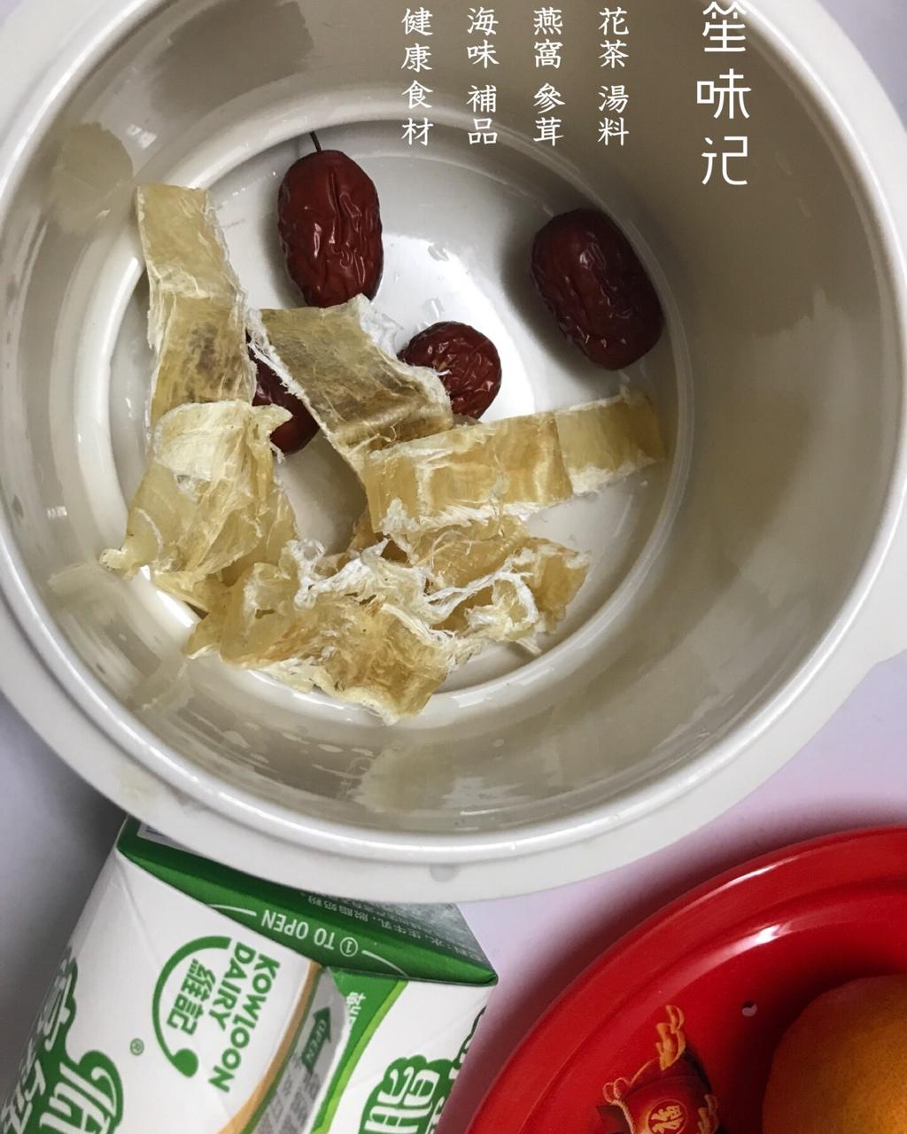 笙味记 做过 2018年02月19日 牛奶炖鱼胶红枣浓浓胶质很香滑好吃,做法很简单:1:红枣4颗+鱼胶6片+一瓶鲜奶2:炖半小时3:可以吃了就真的简单,不腥,怕奶味太浓就加点纯净水。买鱼胶可以加微信:shengweiji01淘宝:笙味记 2018-02-19