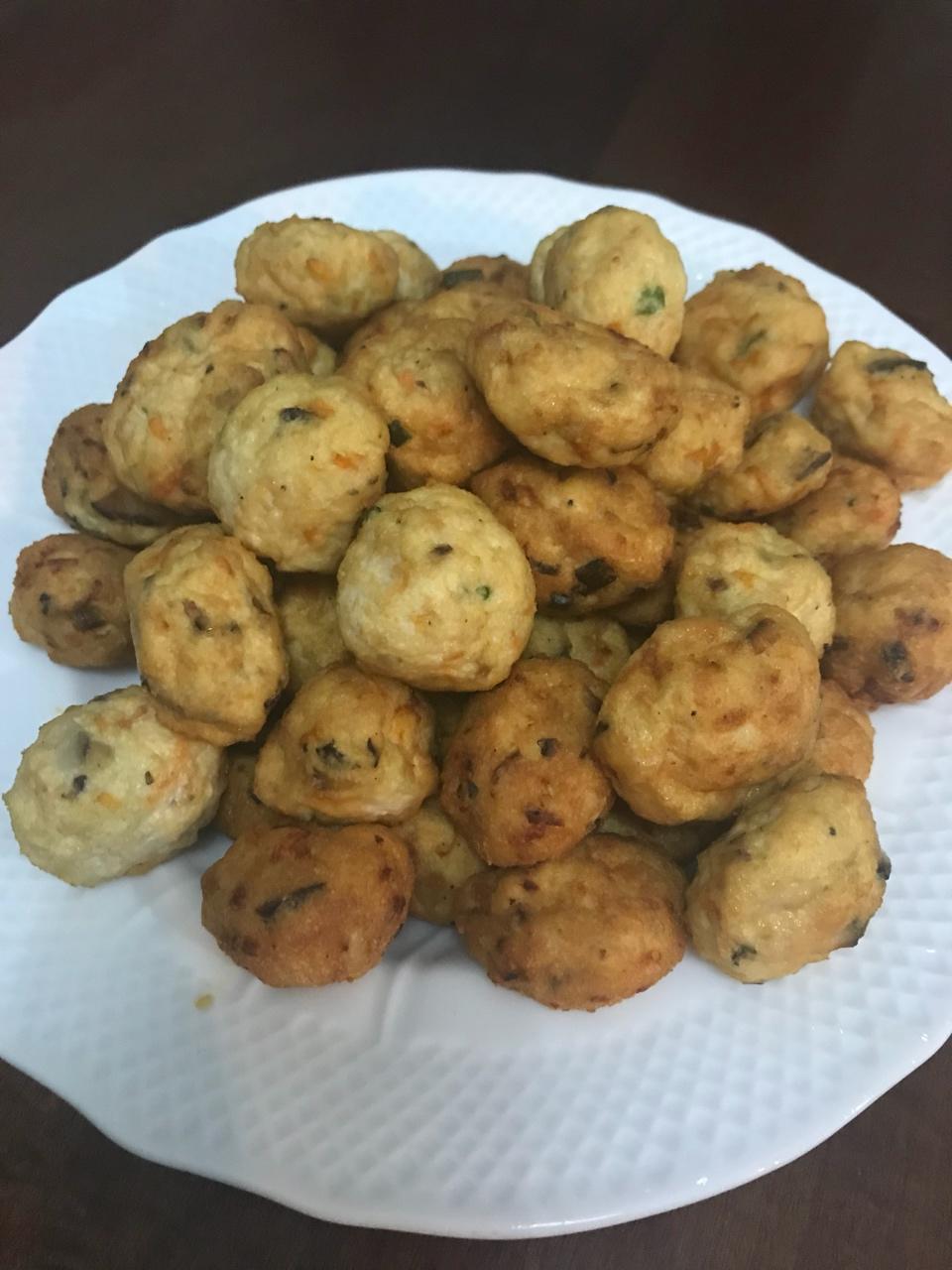 今天炸的豆腐丸子好香,里面加了虾皮、香菇,肉末、胡萝卜,一点葱