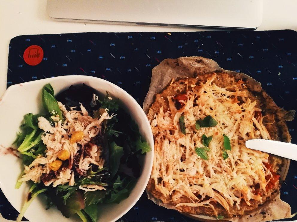 Kaitlin 做过 晚餐•2018年2月21日 #晚餐•2018年2月21日#累到瘫倒在床上..然而并不想晚饭凑合..鸡肉pizza+沙拉~用了之前去迈阿密带回来的蓝莓沙拉酱~酸甜好次~加油! 2018-02-22