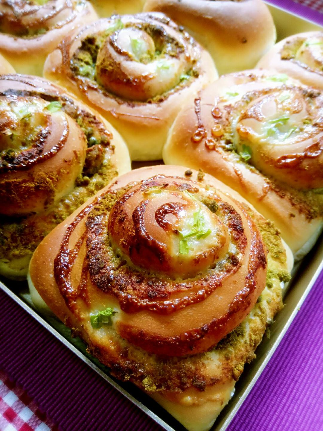 #香葱肉松面包卷#