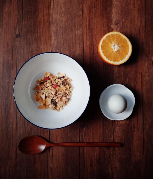 还有半颗鲜橙,水煮蛋~