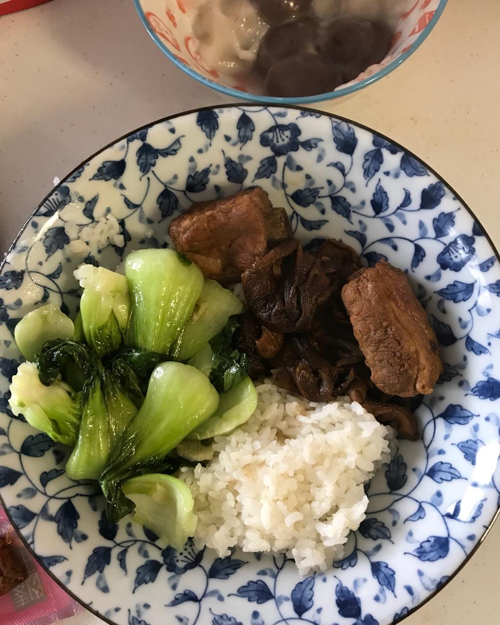 榛蘑排骨饭+酸菜炖粉条,周末终于能吃顿好的啦🍄🐷🌱💐