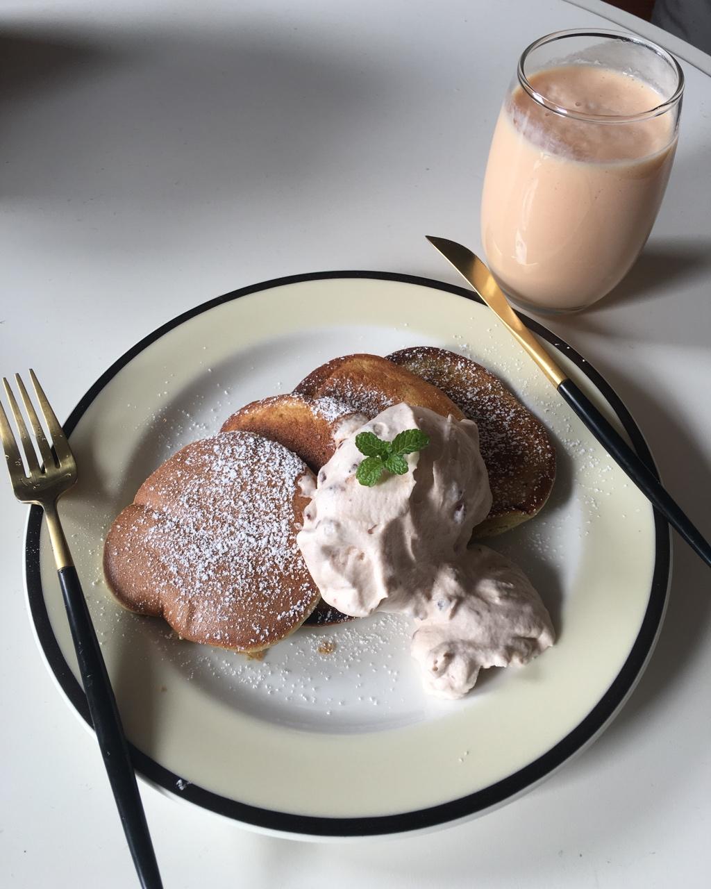 舒芙蕾松饼get了 配红豆奶油