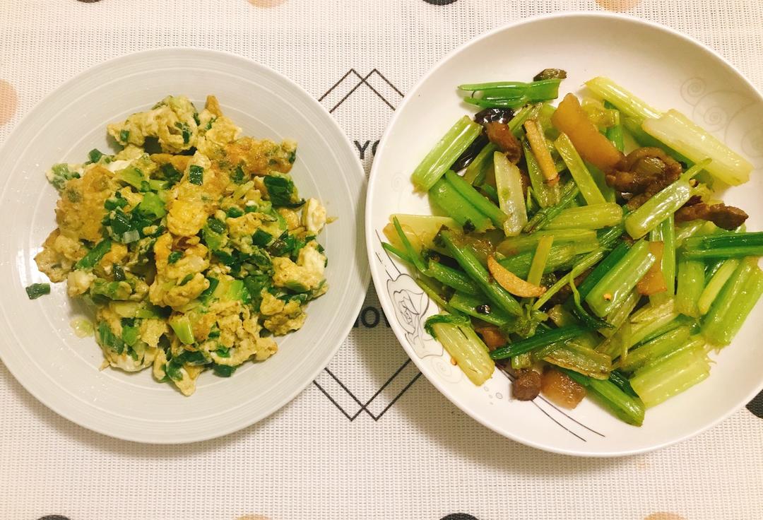 小葱炒鸡蛋&芹菜炒肉丝
