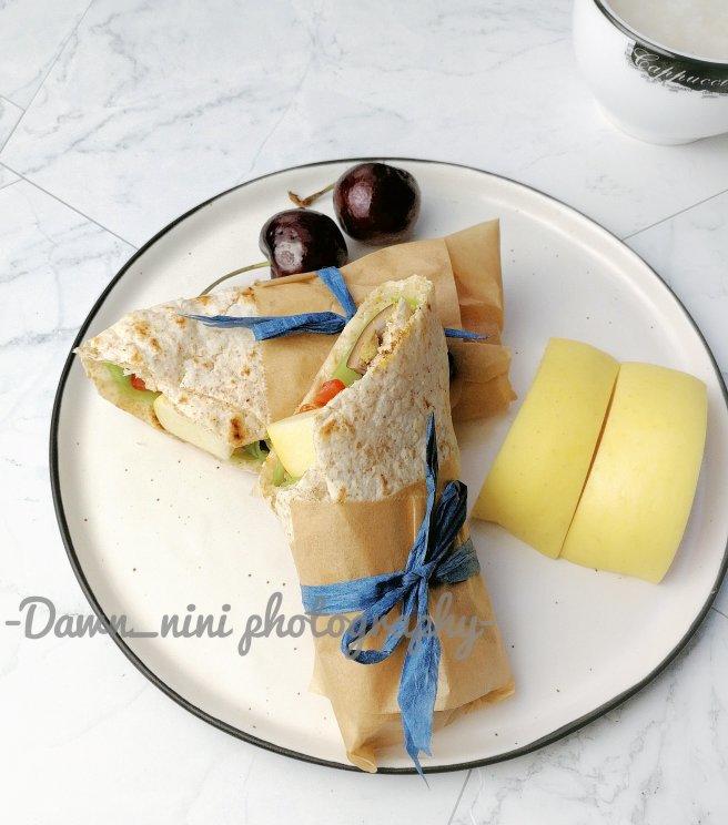 时蔬鸡肉卷🌯+苹果🍎+车厘子🍒