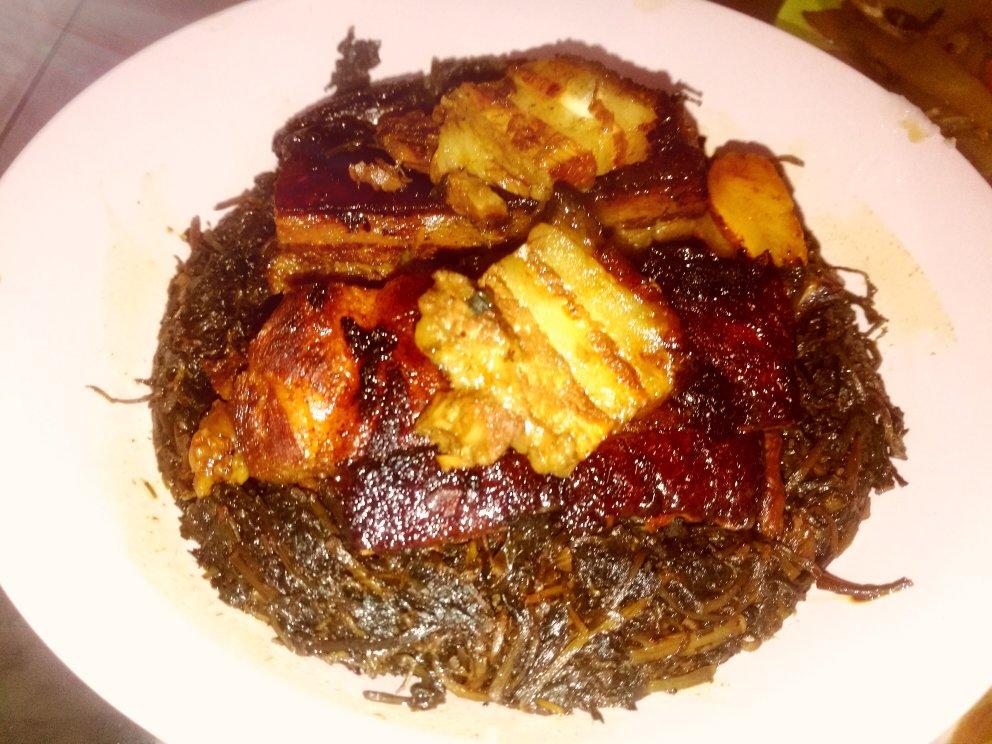 自己晒的马齿菜蒸的。我竟然把肉放反了😱
