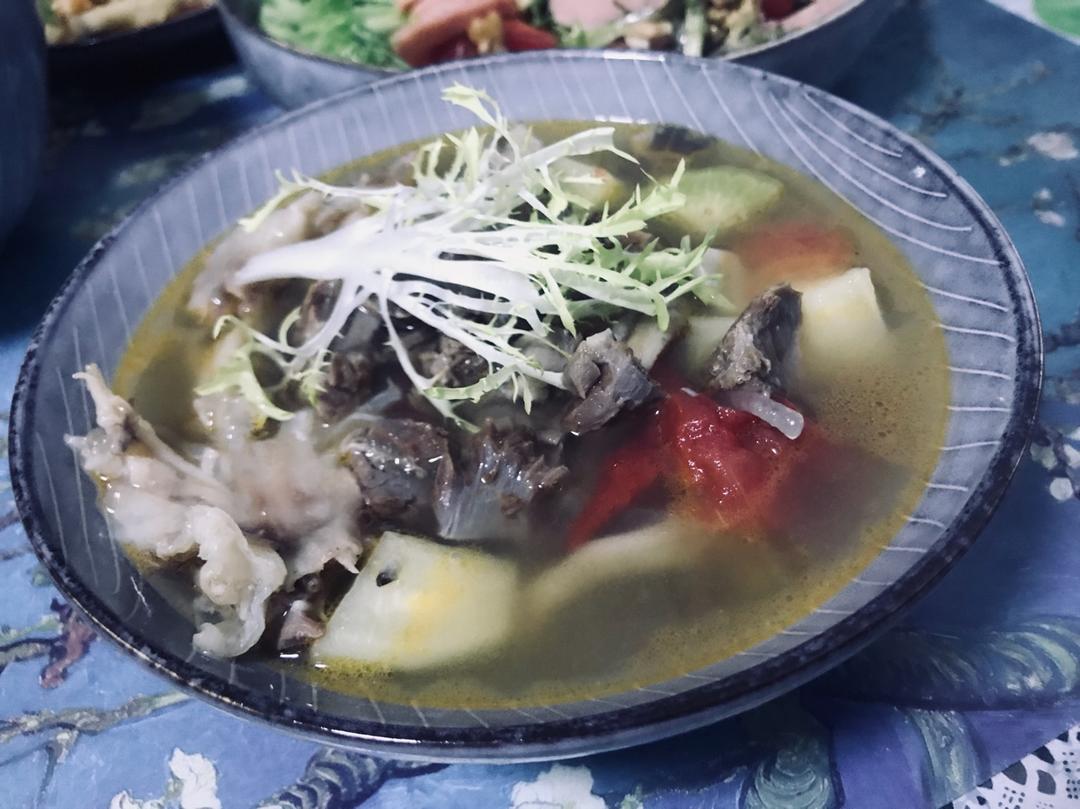 爸爸做的酸汤,妈妈做的甜点。