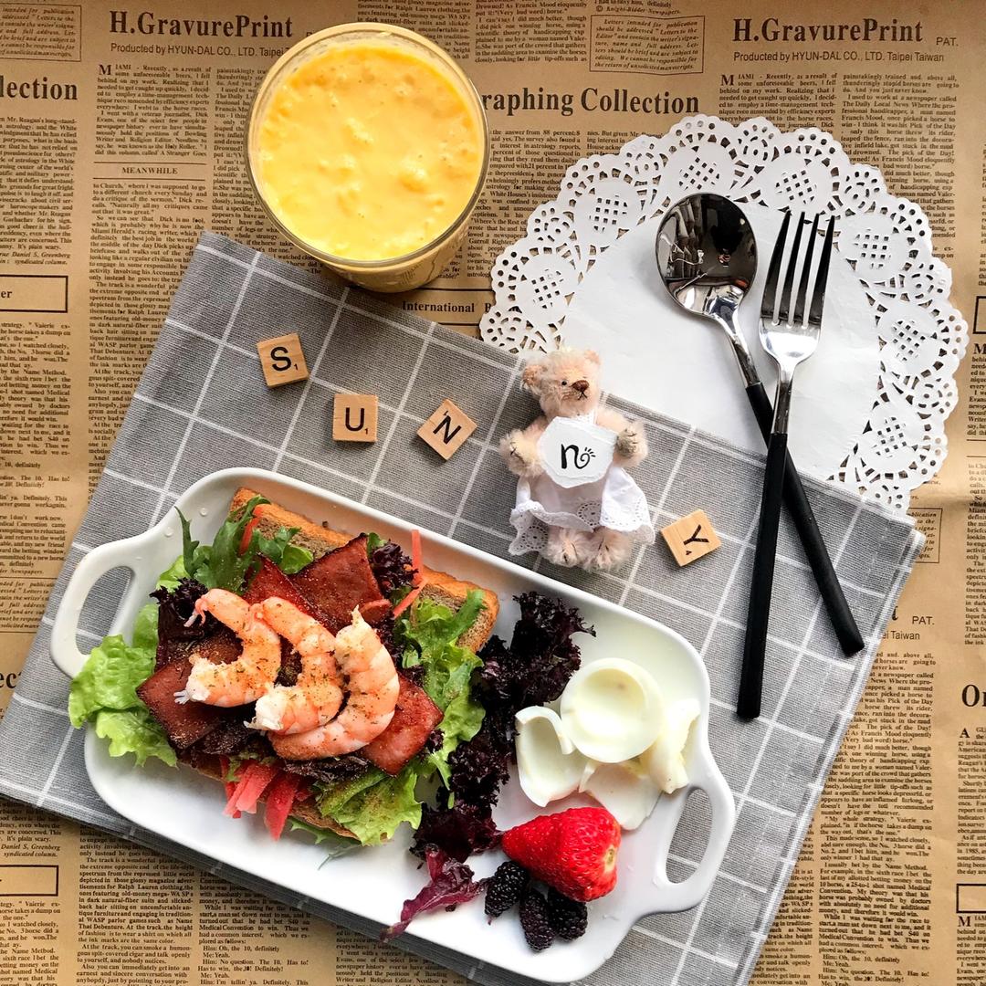 Sunny0730 做过 朵小妞の健康饮食 #朵小妞の健康饮食#健身餐❤早餐:主食:全麦面包,南瓜牛奶肉蛋类:鸡蛋,牛奶,培根,虾蔬果类:生菜,血菜,鸡尾菜,胡萝卜,南瓜,草莓,桑葚油脂类:无Good morning 2018-03-22