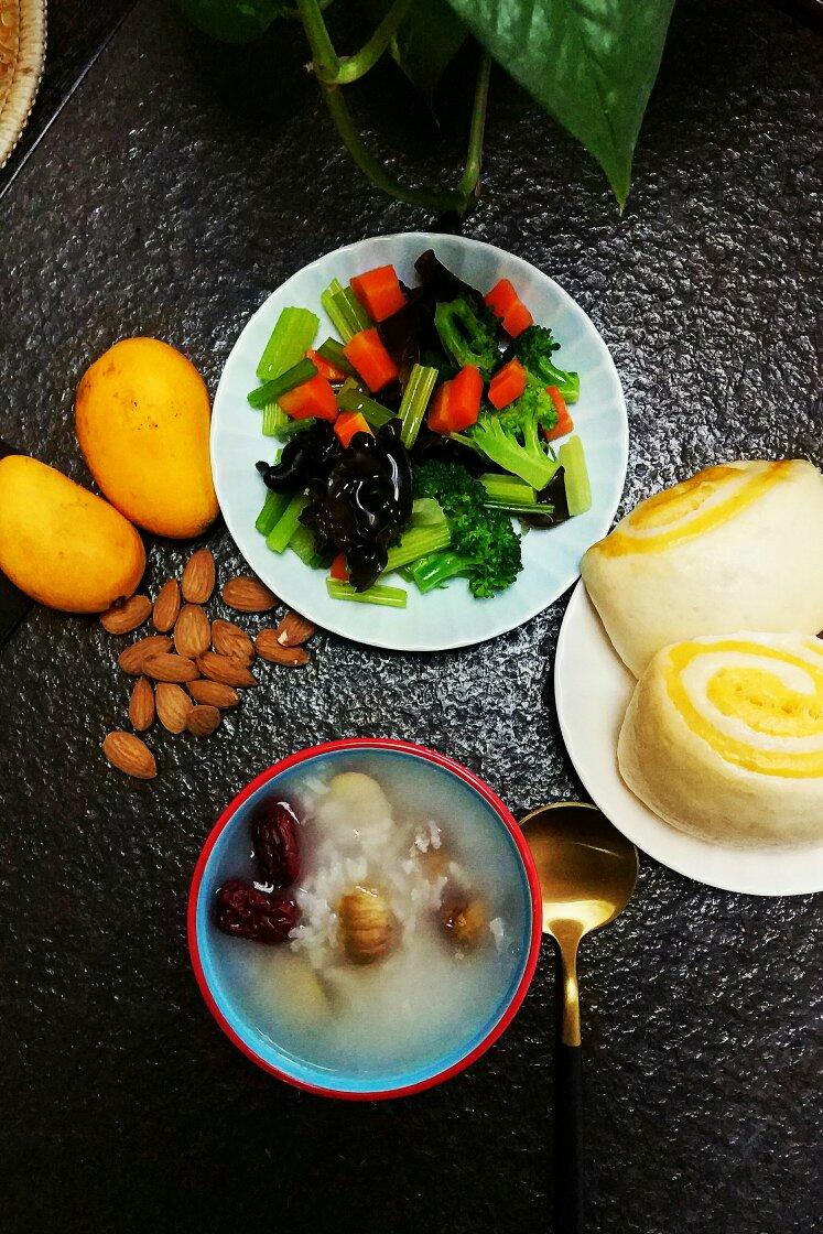 砂锅红枣栗子粥+什锦菜+双色馒头