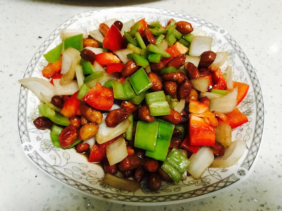 这老醋花生做的 洋葱和彩椒都切的太大了