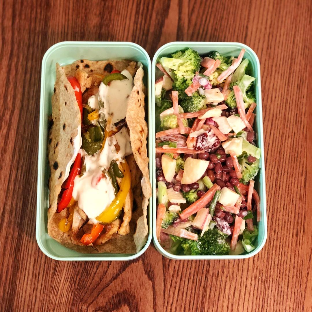 红豆西兰花沙拉+彩椒鸡胸肉卷饼